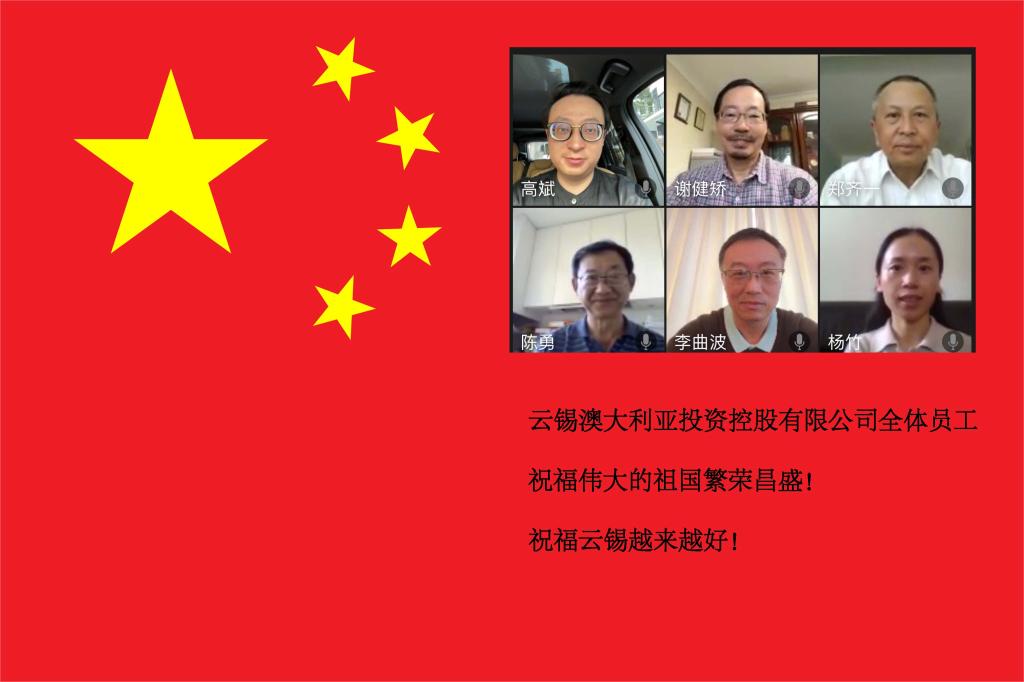 美中國,云中錫,身在國外,心系祖國。美國公司全體員工祝愿親愛的祖國繁榮強大!愿云錫未來創新不止,再創輝煌!(李 恒)