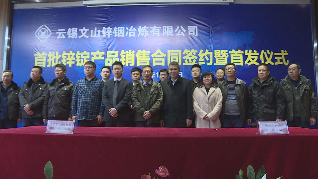 各簽約方在儀式上分別做了表態發言,并與文山鋅銦冶煉公司總經理朱北平簽訂首批鋅錠銷售合同。隨后,參加簽約儀式的嘉賓和領導對首批產品的首發進行了剪彩。