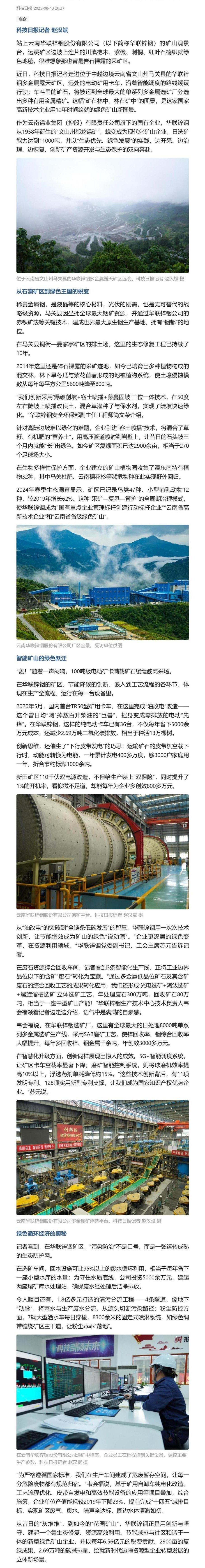 科技日報:從“灰堆堆”到“花園礦”——綠色礦山的“銦都”樣本