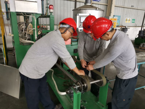 錫材郴州高新材料分公司國慶加班調試無鉛焊條自動澆鑄設備