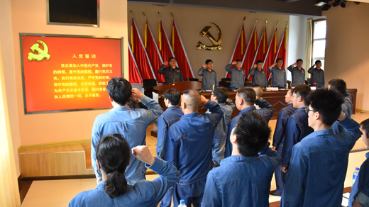 與會的全體正式黨員和預(yù)備黨員面對黨旗宣誓,莊嚴的誓詞激勵著每一名黨員牢記使命、奮勇前行。
